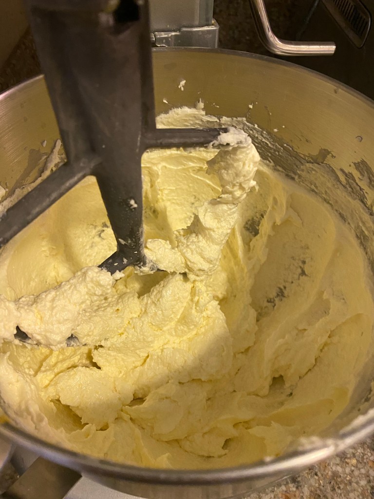 - In the bowl of a stand mixer fitted with a paddle attachment cream butter and sugar until fluffy. Scrape the sides of the bowl and paddle.