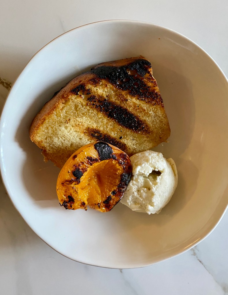 As a pastry chef sometimes I take the basics for granted. I’ve worked in kitchens that are always looking to reinvent the wheel with crazy techniques and unexpected flavors. With all that innovation the classics can get pushed to the wayside. Recently I’ve been revisiting baking basics with a new found appreciate for simple and delicious recipes. I’m really enjoying focusing on a few high quality ingredients and just letting the flavors shine. This pound cake has been a favorite of mine lately. Sturdy enough to slice and grill or cube and dip in chocolate fondue, but still incredibly moist. It mixes together in minutes and bakes in about an hour. A great base for strawberry shortcake, top this cake with macerated berries and a dollop of whipped cream. Wanna your dessert to be totally extra? Sure you do! Throw slices of this cake on the grill with halved peaches and apricots, then top everything with a drizzle of honey, pinch of Maldon salt, and serve with a really good quality vanilla ice cream. The main flavors in this cake are butter and eggs so definitely don’t scrimp on the good stuff. Have fun and remember when in doubt, eat dessert first.